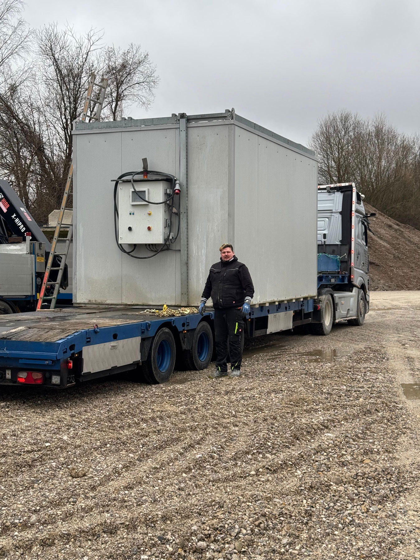 Video: Nachtschichtbaustelle – Beladung für die Fahrt zum Flughafen München. Hallenerweiterung steht an.
